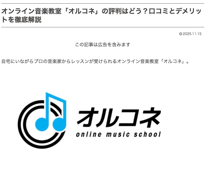 この度「ギター耳コピ 練習とか日記」さんに「オンライン音楽教室「オルコネ」の評判はどう?口コミとデメリットを徹底解説」としてご紹介いただきました!