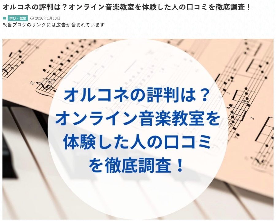 この度「タダまっぷ」さんに「オルコネの評判は?オンライン音楽教室を体験した人の口コミを徹底調査!」としてご紹介いただきました!