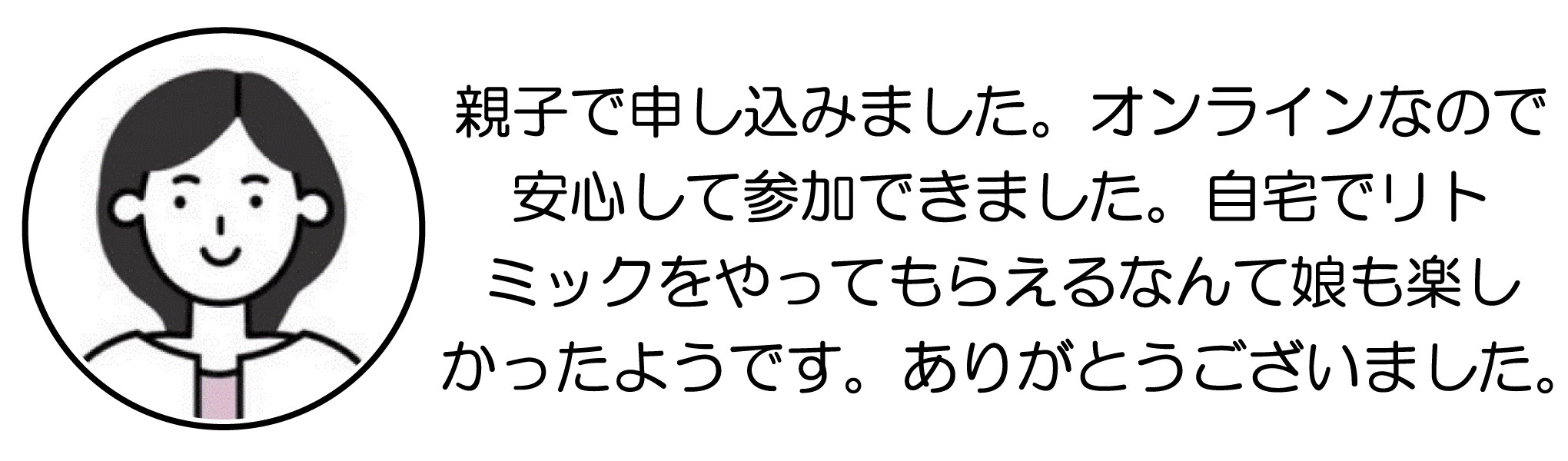 親子で申し込みました。オンラインなので安心して参加できました。自宅でリトミックをやってもらえるなんて娘も楽しかったようです。ありがとうございました。